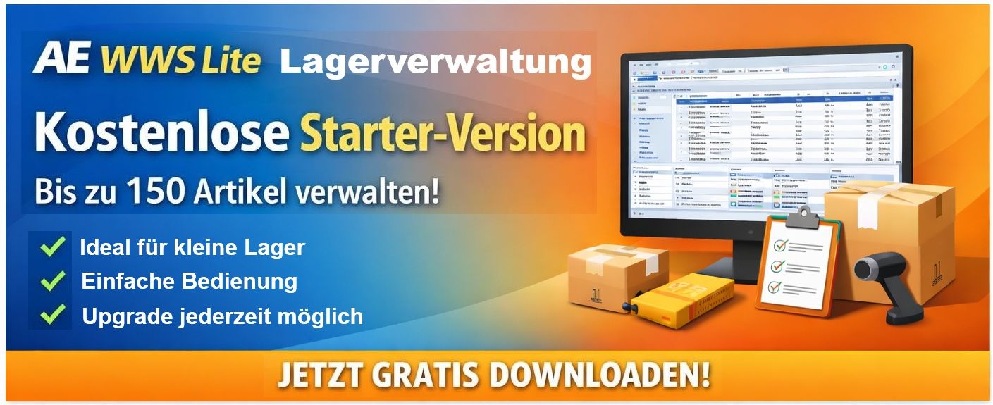 Gute Nachrichten für kleine Unternehmen, Werkstätten, Vereine und Selbstständige: Die Starter-Version unserer Lagerverwaltungssoftware AE WWS Lite ist ab sofort kostenlos verfügbar.